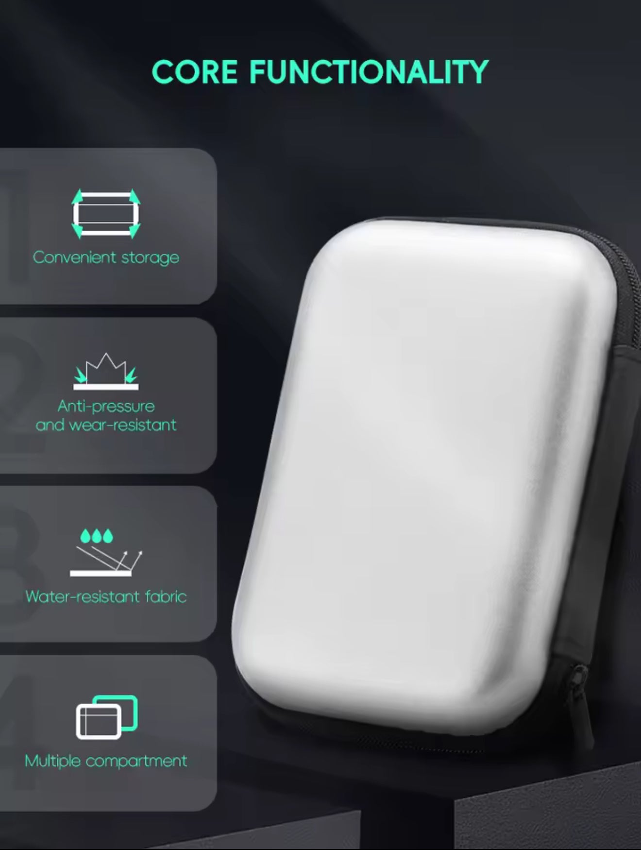📦 Organized Storage: Includes mesh pocket for storing cables, SD cards, earphones, or small accessories.